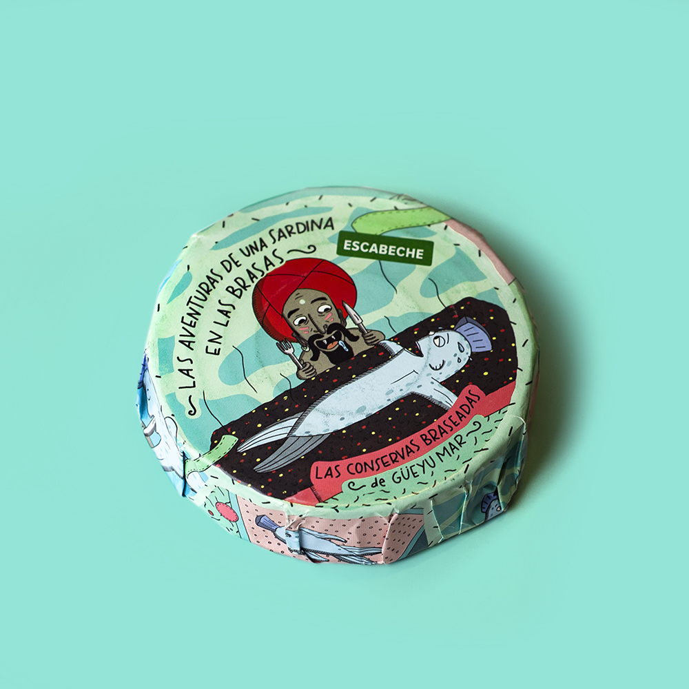 Een complex, bewerkelijk en volledig handgemaakt proces van zoeken naar zeeschatten, geuren van geschikte houtsoorten en oliën van hemelse texturen. Sardines, scheermessen, kokkels, tonijn, mosselen… producten van de hoogste kwaliteit, gegrild en later geconserveerd, die het openen van een blikje veranderen in een heerlijke maaltijd met de smaak van de zee en de open grill van GüeyuMar.
